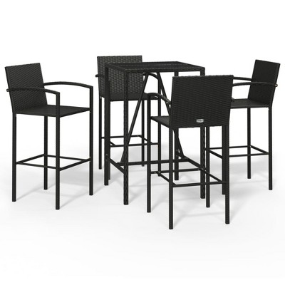 vidaXL 3-Piece Patio Bar Set - Black Poly Rattan Outdoor Garden Furniture with Tempered Glass Tabletop