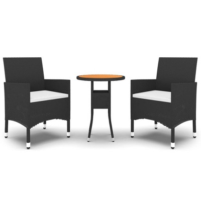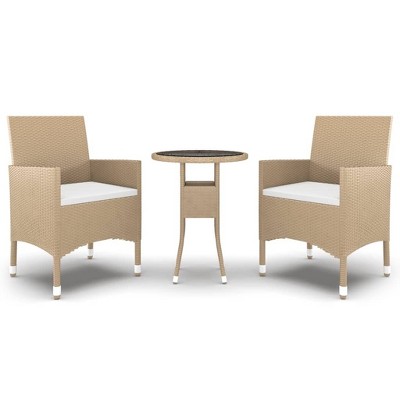 Product Name: VidaXL 3 Piece Patio Dining Set Gray Poly Rattan and Glass - Gray 2