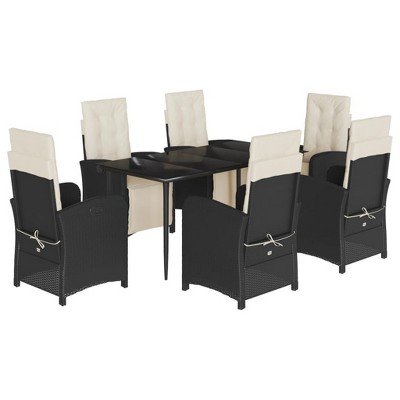 vidaXL 3 Piece Patio Dining Set with Cushions - Black Poly Rattan, Adjustable Backrest, Tempered Glass Tabletop