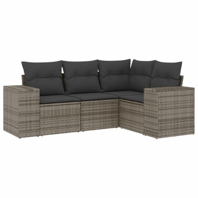 vidaXL 4 Piece Patio Sofa Set with Cushions Gray Poly Rattan