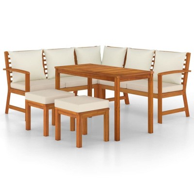 vidaXL 5 Piece Outdoor Patio Lounge Set - Natural Bamboo Finish - Cream White Cushions - Sofa, Chairs, and Coffee Table - Flexible Modular Design