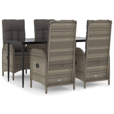 vidaXL 5 Piece Patio Dining Set with Cushions Black and Gray Poly Rattan - 63" Table Length 4x Chair + Table