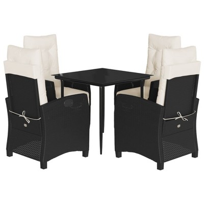 vidaXL 5 Piece Patio Dining Set with Cushions Brown Poly Rattan - 31.5" Table Length Round Leg 2 Items