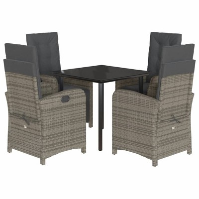 Product Name: VidaXL 5-Piece Patio Dining Set with Reclining Chairs - Poly Rattan, Tempered Glass Table, Navy Cushions, Adjustable Backrest/Footrest