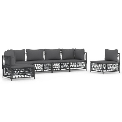 vidaXL 5-Piece Patio Lounge Set - Outdoor Furniture Set with Cushions, Anthracite Steel - Modular Configurable Sofa Set with Woven Fabric Durability