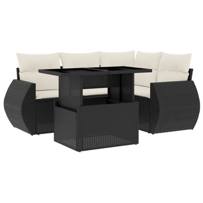 Product Name: VidaXL 5 Piece Patio Sofa Set with Cushions Black and Cream Poly Rattan - Without Storage