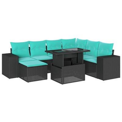 Product Name: VidaXL 6 Piece Garden Sofa Set with Cushions Black Poly Rattan - Black