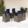vidaXL 7-Piece Patio Dining Set-Adjustable Gray Poly Rattan Chairs & Glass Table-Weather-Resistant Navy Cushions-for Outdoor/Garden