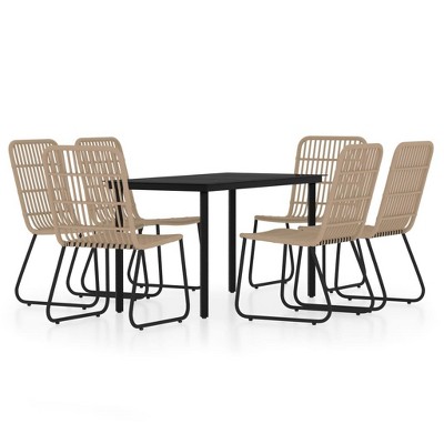 vidaXL 7 Piece Patio Dining Set Black - 55.1" Table Length 6 Chairs