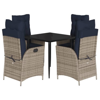 vidaXL 7 Piece Patio Dining Set with Cushions Gray Poly Rattan - 63" Table Length Sharp Leg 6 Items