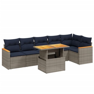 vidaXL 7 Piece Patio Sofa Set with Cushions Gray Poly Rattan