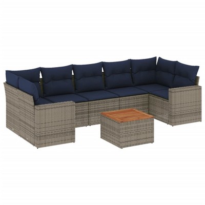 vidaXL 8 Piece Patio Sofa Set with Cushions Gray Poly Rattan