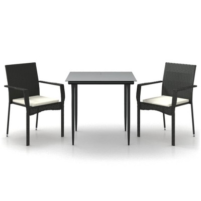 vidaXL 9 Piece Black Patio Dining Set with Cushions - PE Rattan Garden Table & Chairs Outdoor Furniture