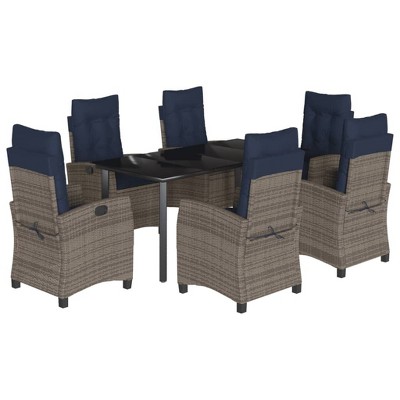 Product Name: VidaXL 9-Piece Outdoor Poly Rattan Dining Set with Adjustable Recliners and Acacia Tabletop - Gray/Navy Blue Modern Patio Furniture