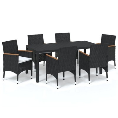 Product Name: VidaXL 9 Piece Patio Dining Set with Cushions Poly Rattan Black - 72.8" Table Length 8 Chairs
