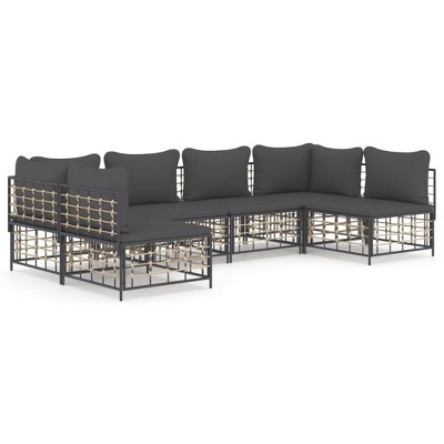 Product Name: VidaXL Anthracite Poly Rattan 7 Piece Patio Lounge Set with Cushions - Versatile Modular Design, Weather-Resistant, Comfort-Enhanced