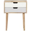 This rustic bedside cabinet brings a touch of mid-century modern style and practical storage to your bedroom. Expertly handmade from solid mango wood, each piece features unique wood grain patterns and natural variations, making every cabinet one of a kind. The combination of natural wood with white and light grey drawer fronts adds a fresh, contemporary look that complements a variety of decor styles.