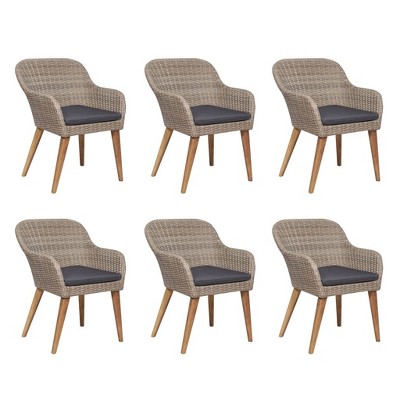 Product Name: VidaXL Beige Poly Rattan 7-Piece Patio Dining Set with Adjustable Recliners, Acacia Tabletop, and Washable Cushions - Contemporary Outdoor Furniture