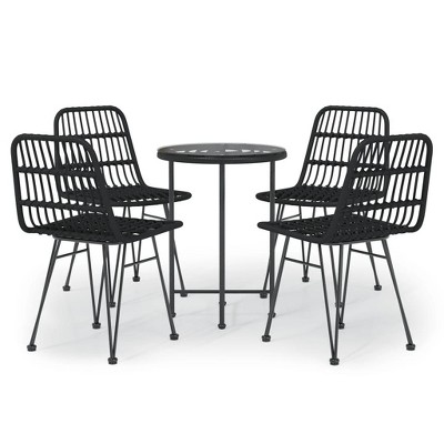 Product Name: VidaXL Bistro Set Outdoor Patio Balcony Table and Chairs Rattan Look 3 Piece - Black