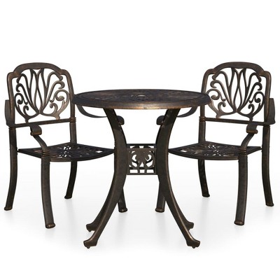 vidaXL Bistro Set Patio Table and Chair Bistro Table Outdoor Cast Aluminum - Bronze 4 Items