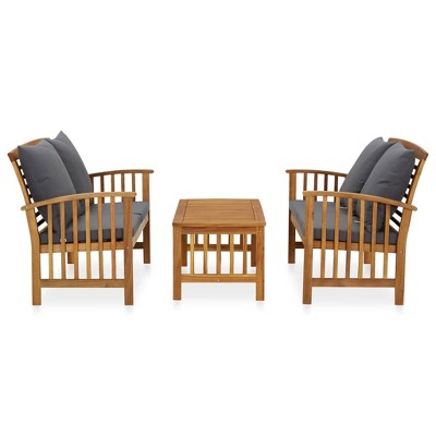 Product Name: VidaXL Patio Furniture Set Patio Lounge Set Sectional Sofa Solid Wood Acacia - Dark Gray Middle + Corner + Bench + Table