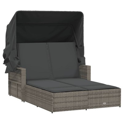 vidaXL Brown Poly Rattan Double Sun Lounger with Canopy/Red Cushions - Adjustable Backrest, UV-Resistant for Garden/Patio