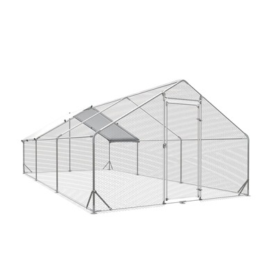 This spacious chicken cage provides a secure and comfortable outdoor enclosure for your chickens or other small animals. Constructed from durable silver galvanized steel, it is designed to withstand the elements and offer long-lasting protection. The wire mesh panels ensure excellent ventilation while keeping your animals safe from predators.