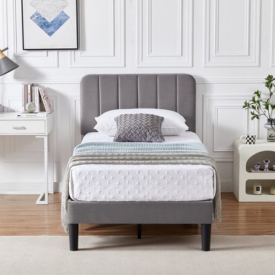 vidaXL Bed Frame with Headboard Platform Foundation Bedroom Furniture Velvet - Dark Gray California King