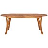 - The solid acacia wood table top offers plenty of space for dining and withstands wear and tear from the elements, making it a lasting option.