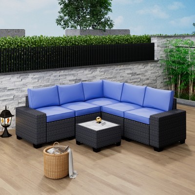 This modern 5-piece outdoor dining set is crafted to elevate your outdoor dining game. It’s a rectangular table with four reclining chairs, perfectly blending style and comfort, seating four people with ease. This trendy outdoor dining set is just the spot for hosting friends or enjoying family meals in the sun. The adjustable backrests on each chair let you find your perfect spot for relaxation, keeping things comfy for long hangouts. Made from weather-proof materials, this set stands up to the elements, ready for use all year round. The creamy white cushions stand out against the stylish black rattan, giving your outdoor area a warm and inviting look. Plus, the glass top adds a touch of class and is super easy to clean, blending practicality with chic vibes.