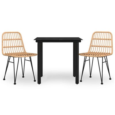 vidaXL Garden Dining Set Black Steel, polyethylene, tempered glass - Brown 31.5" Table Length 2 Items