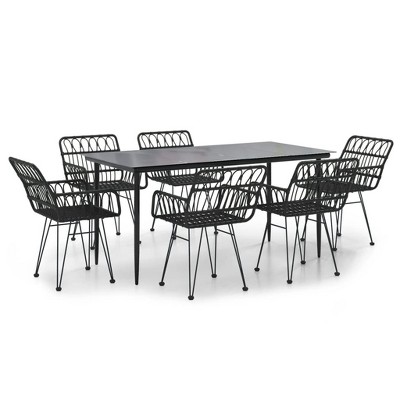 vidaXL Garden Dining Set Black Steel, Tempered Glass, Polyethylene Medium - Brown 31.5" x 31.5" x 29.1" 4 Items