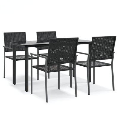 This 5-Piece Garden Dining Set is perfect for anyone who loves outdoor dining. It has a modern rectangular table made from sturdy tempered glass and four comfy chairs made of weatherproof PE rattan, balancing functionality with style. Perfect for gatherings in the garden, balcony, or patio, this set creates a great vibe for friends and family, blending right in with any outdoor decor. The chic black finish adds a hint of elegance while its solid build assures reliable use over time.