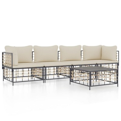 Upgrade your patio or garden with this stylish 5-piece lounge set, designed for both comfort and durability. The set features a sleek anthracite powder-coated metal frame with elegant poly rattan (woven rope) detailing, offering a contemporary look that complements any outdoor space.