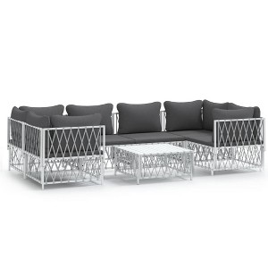 This 7-Piece Garden Lounge Set gives you a fantastic and comfy seating solution for outdoor areas. With its sleek white powder-coated steel frames and roomy seating, it's perfect for socializing in your garden, patio, or balcony with friends or family, letting you kick back in style.