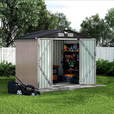 This spacious metal garden shed is the ideal solution for organizing and protecting your outdoor tools, equipment, and patio furniture. Designed for durability and convenience, it offers a modern look and practical features to keep your backyard or garage tidy and accessible.