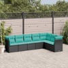 This 7-Piece Modular Garden Sofa Set is stylish and practical outdoor furniture made for modern living. It's perfect for spacious backyards, patios, or terraces, combining sturdy build quality with good looks, giving you a cozy spot for relaxing or hanging out. The sleek black poly rattan finish and blue cushions add a trendy touch, making it a must-have for any outdoor area.