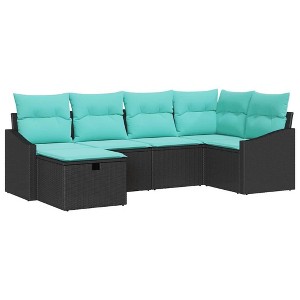 Product Name: VidaXL Garden Sofa Set with Cushion 6 pcs Black Poly rattan - Black without table Blue