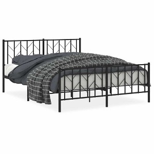 vidaXL Queen Metal Bed Frame with Headboard, Under Bed Storage, Noise Free, Black, No Mattress