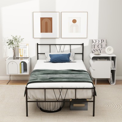 Product Name: VidaXL Metal Single Bed Frame - Black Steel with Headboard/Footboard, Breathable Support Slats, Under-Bed Storage | 39.4"x78.7" Dimensions