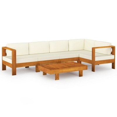 vidaXL Outdoor Patio Lounge Set, 6-Piece Acacia Wood Construction, Cream White Cushions, Modern Design, Versatile Leisure Living Furniture