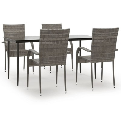 vidaXL Patio Dining Set - 5 Piece Garden Furniture with Cushions, Gray Poly Rattan Material, Solid Acacia Wood Tabletop, Powder-Coated Steel Frame
