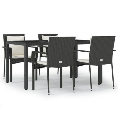 Product Name: VidaXL Patio Dining Set Outdoor Conversation Set with Cushions Poly Rattan - Black 59.1" Table Length 6 Pieces