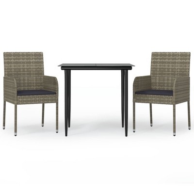 vidaXL Patio Dining Set Outdoor Rattan Wicker Table and Chair Set for Porch - Gray 31.5" Table Length 2 Items