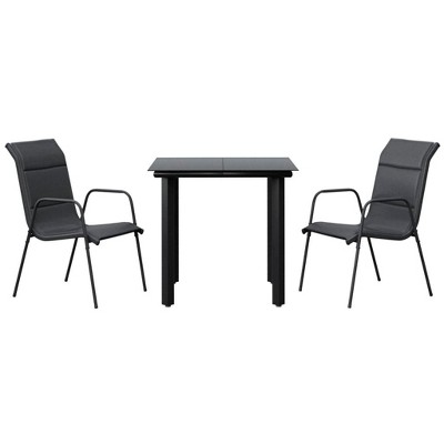 vidaXL Patio Dining Set Outdoor Table and Chair Black Steel and Textilene - 31.5" Table Length 4 Items