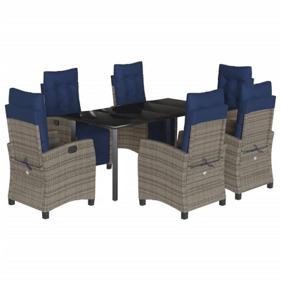 vidaXL Patio Dining Set with Cushions Outdoor Garden Furniture Poly Rattan - 74.8" Table Length Gray 6 Items