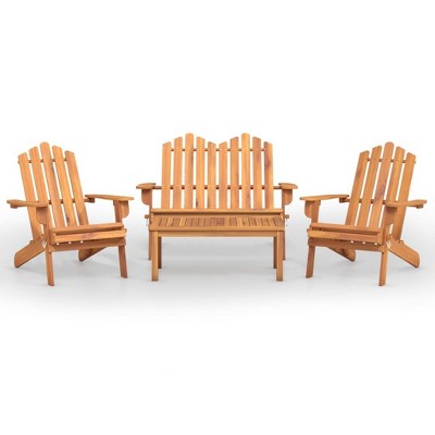 vidaXL Patio Lounge Set, 3 Piece, Solid Spruce Wood, Untreated, Comfortable, Outdoor Furniture, Adirondack-Style Backrests, Included Coffee Table