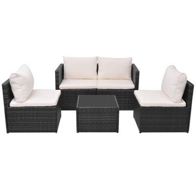 vidaXL Patio Lounge Set, 6-Piece, Poly Rattan, Black - Outdoor Furniture with Cushions, Coffee Table