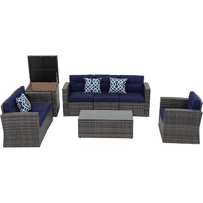 vidaXL Patio Lounge Set Outdoor Sectional Sofa Set Table Garden Poly Rattan