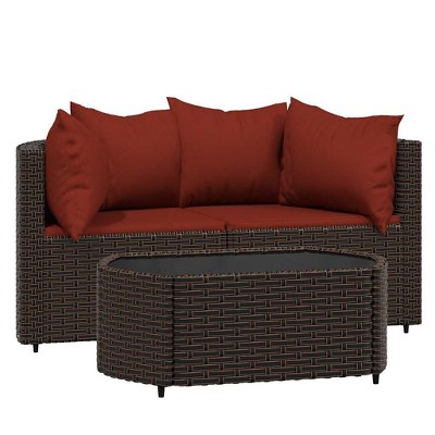 Product Name: VidaXL Patio Loveseats Sectional Sofa with Cushions for Balcony Poly Rattan - Black 2x Corner + Table